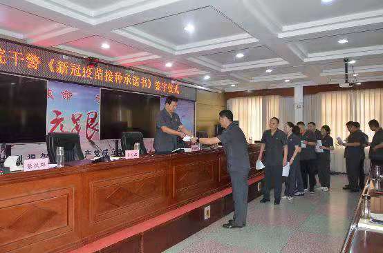会后,全体干警签订了新冠疫苗接种承诺书。